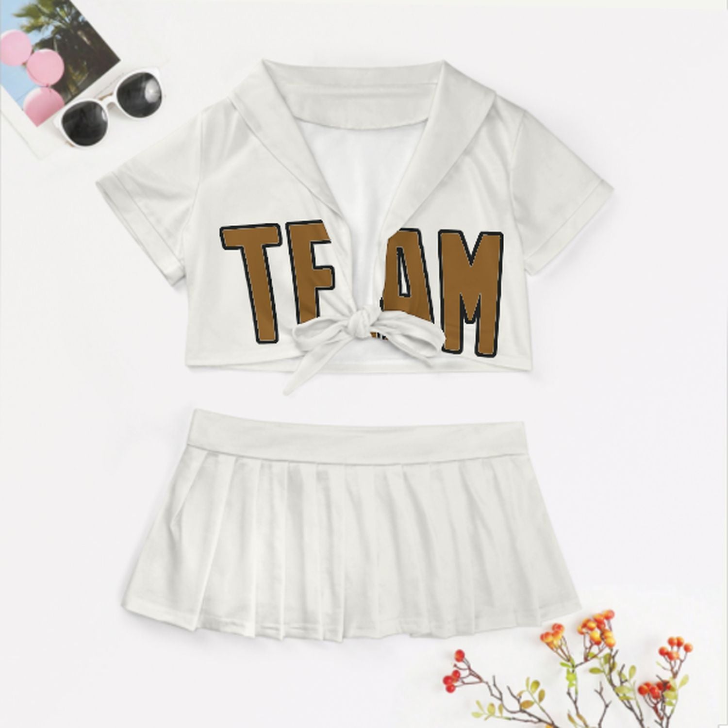 Maßgeschneidertes Weiß Khaki Cheerleader Outfit Set