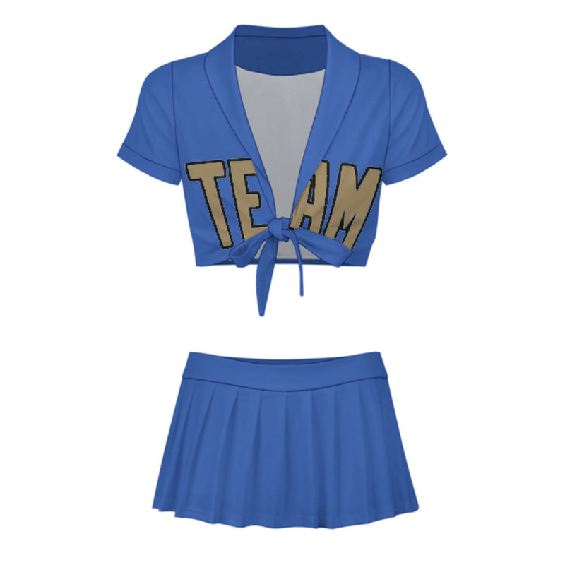 Conjunto de uniforme de animadora deportivo y femenino, confeccionado en poliéster transpirable con corte ceñido, ideal para presentaciones, fiestas y regalos.