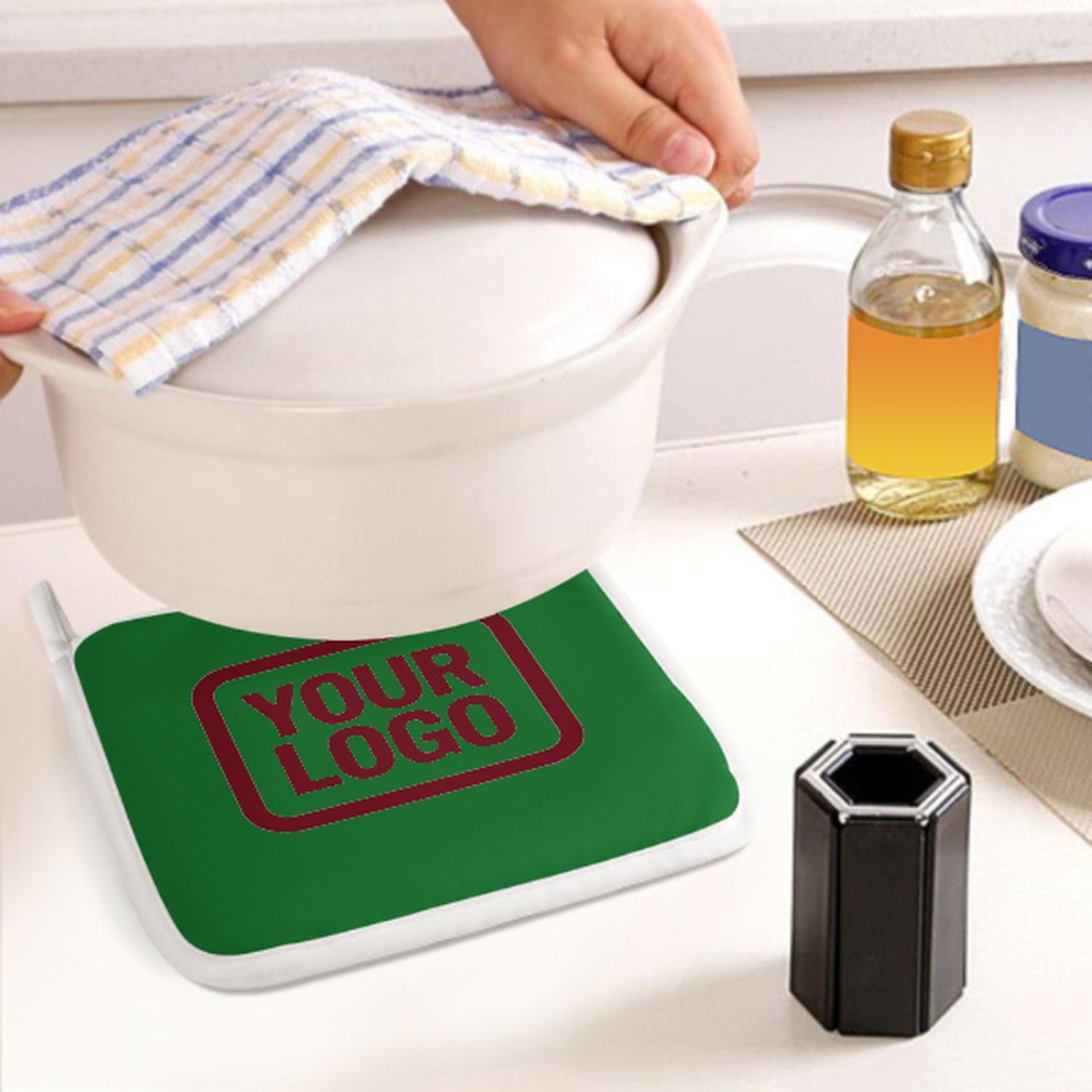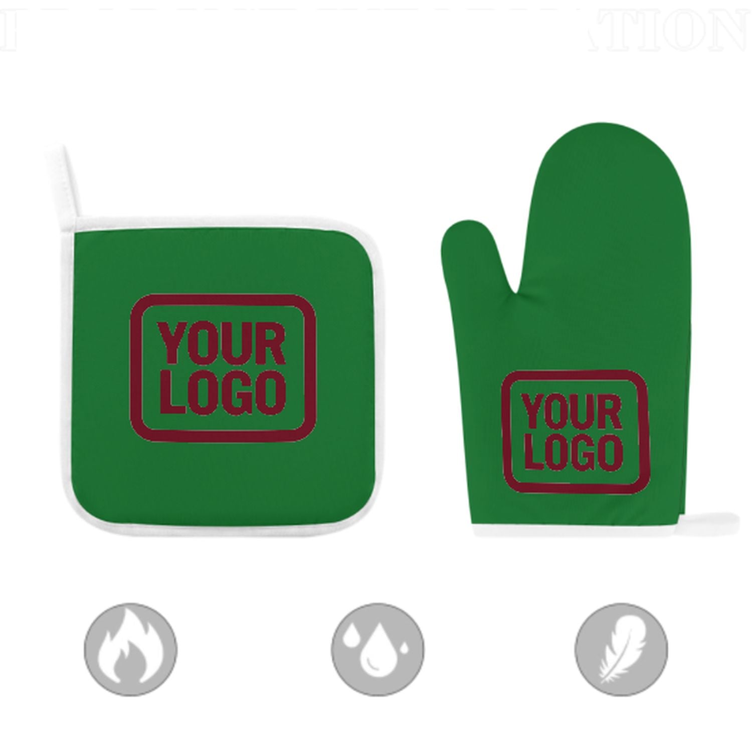 Un elegante juego de 2 guantes de horno resistentes al calor, confeccionados con tela de poliéster duradera, ideales para brindar seguridad y comodidad al cocinar y hornear.