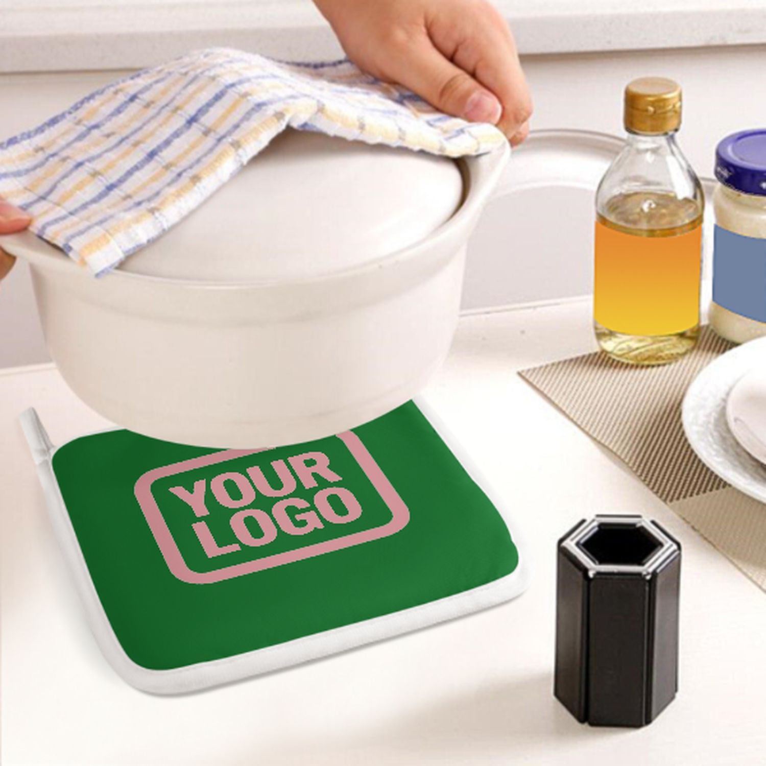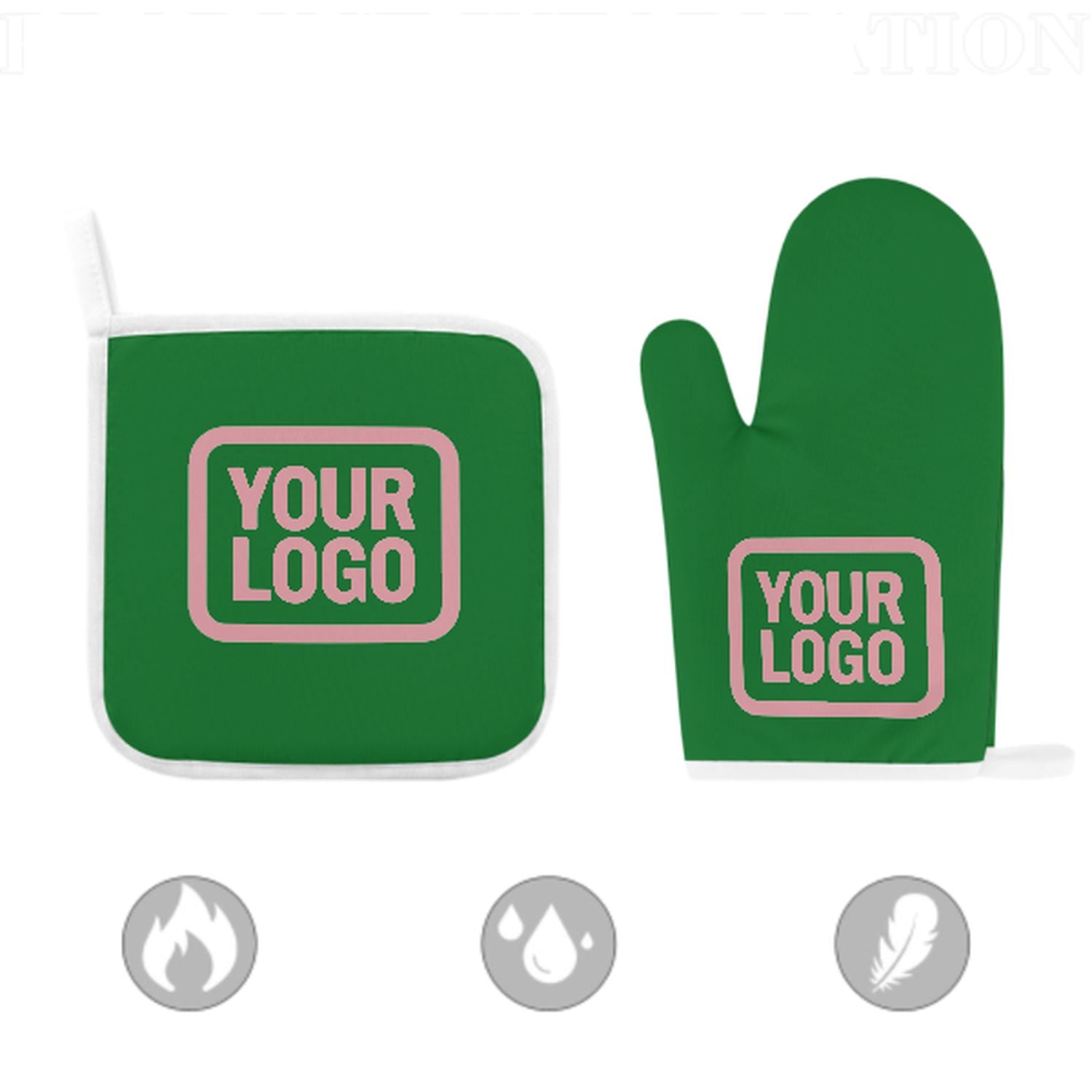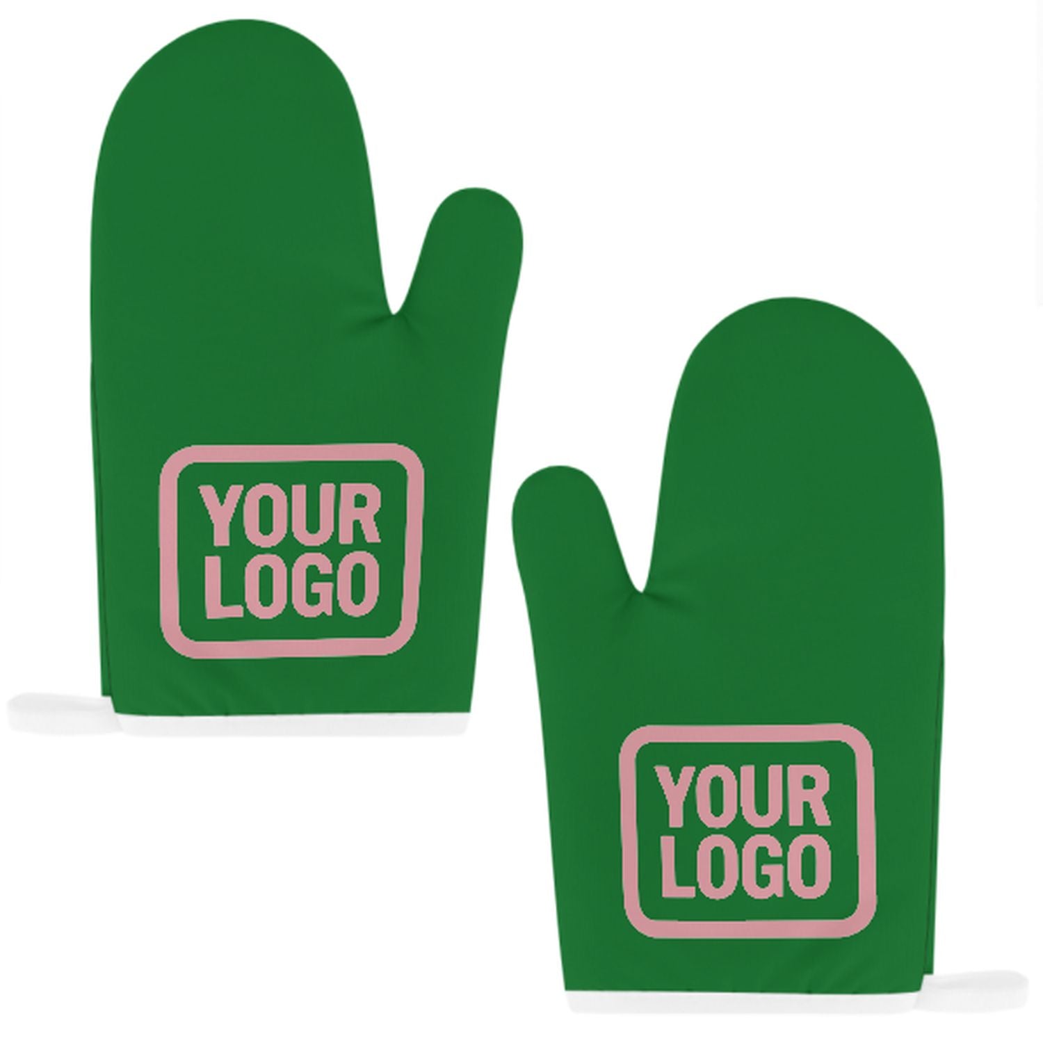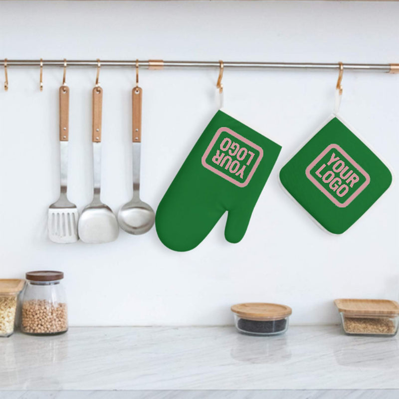 Un elegante juego de 2 guantes de horno resistentes al calor, confeccionados con tela de poliéster duradera, ideales para brindar seguridad y comodidad al cocinar y hornear.
