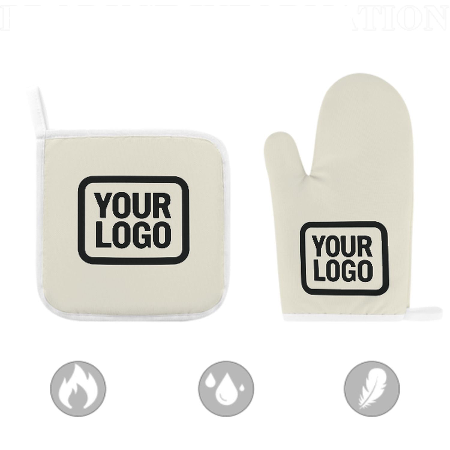 Maßgeschneidertes Beige Schwarz Topfhandschuh Set – 2-teilig