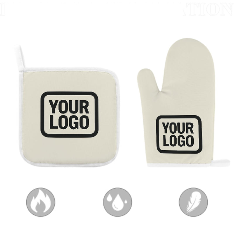 Ein stilvolles, hitzebeständiges 2-teiliges Topfhandschuh-Set aus robustem Polyestergewebe, ideal für Sicherheit und Komfort beim Kochen und Backen.