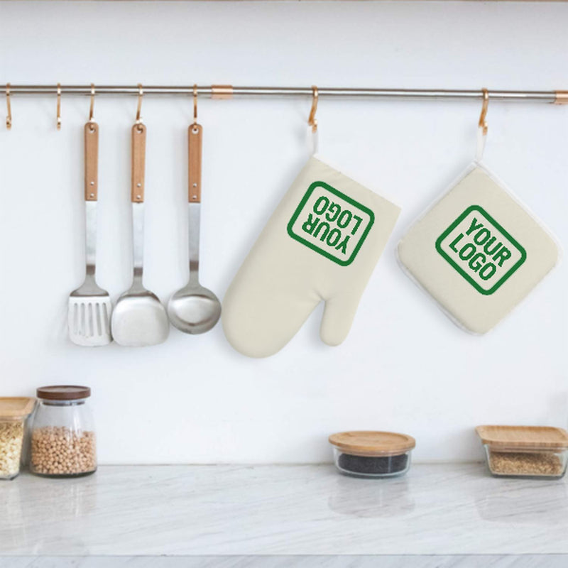 Maßgeschneidertes Beige Smaragdgrün Topfhandschuh Set – 2-teilig