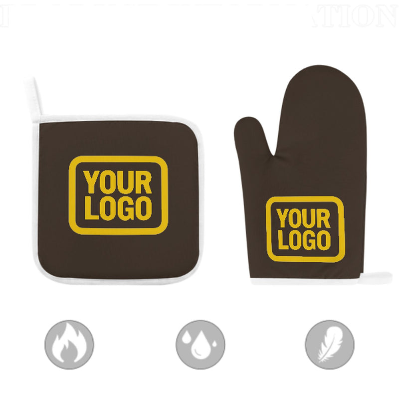 Maßgeschneidertes Braun Gold Topfhandschuh Set – 2-teilig