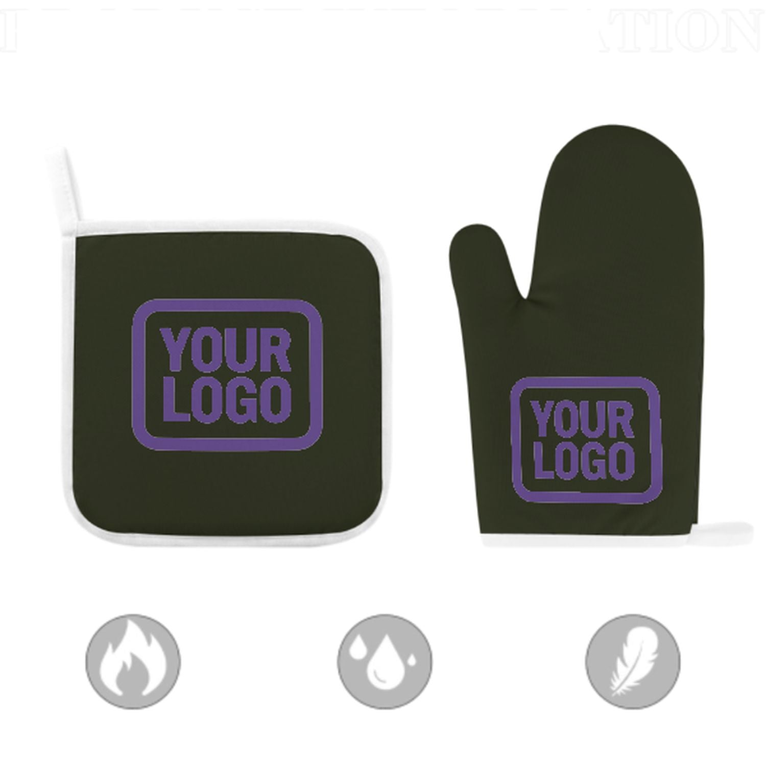 Ein stilvolles, hitzebeständiges 2-teiliges Topfhandschuh-Set aus robustem Polyestergewebe, ideal für Sicherheit und Komfort beim Kochen und Backen.