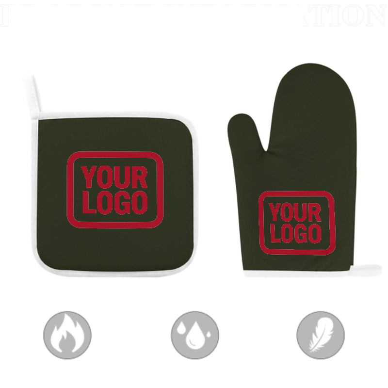 Maßgeschneidertes Dunkles Oliv Rot Topfhandschuh Set – 2-teilig
