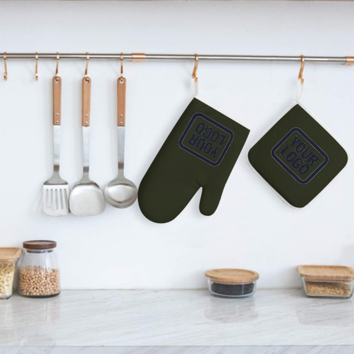 Maßgeschneidertes Dunkles Oliv Stahlblau Topfhandschuh Set – 2-teilig