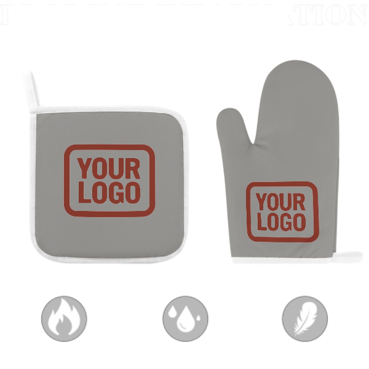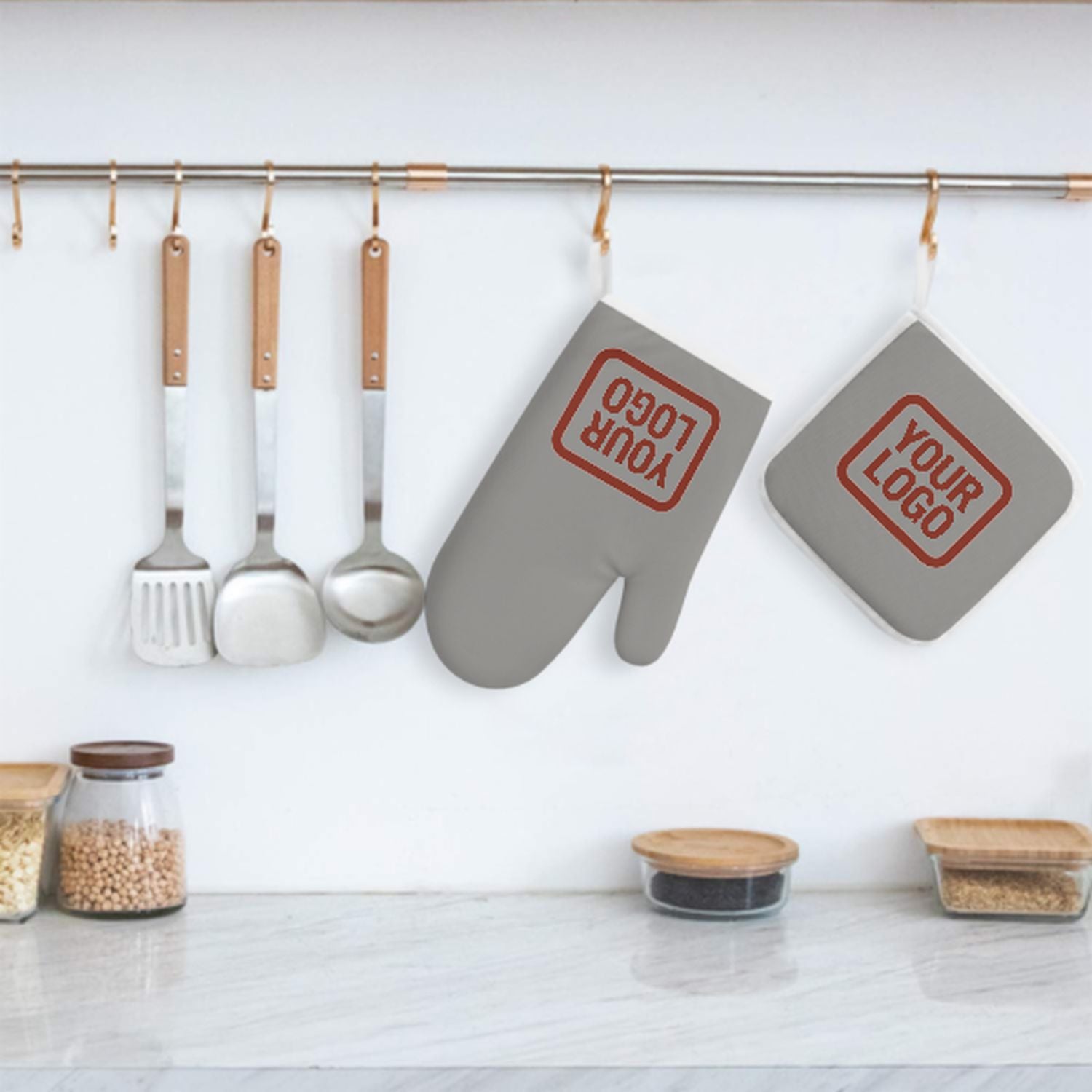 Ein stilvolles, hitzebeständiges 2-teiliges Topfhandschuh-Set aus robustem Polyestergewebe, ideal für Sicherheit und Komfort beim Kochen und Backen.