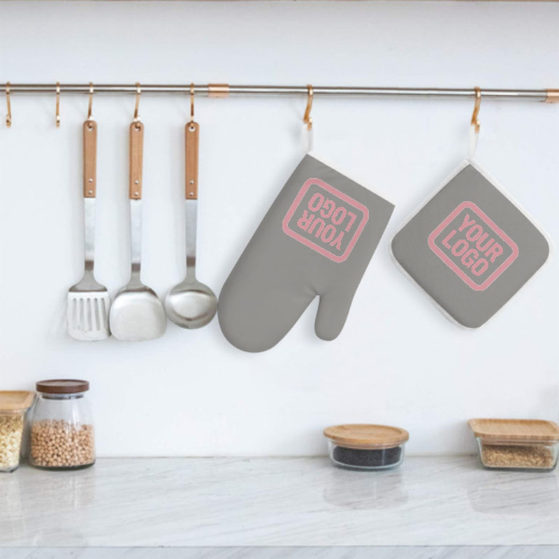 Ein stilvolles, hitzebeständiges 2-teiliges Topfhandschuh-Set aus robustem Polyestergewebe, ideal für Sicherheit und Komfort beim Kochen und Backen.