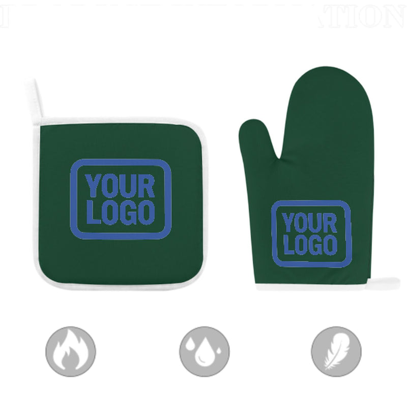 Maßgeschneidertes Moosgrün Himmelblau Topfhandschuh Set – 2-teilig