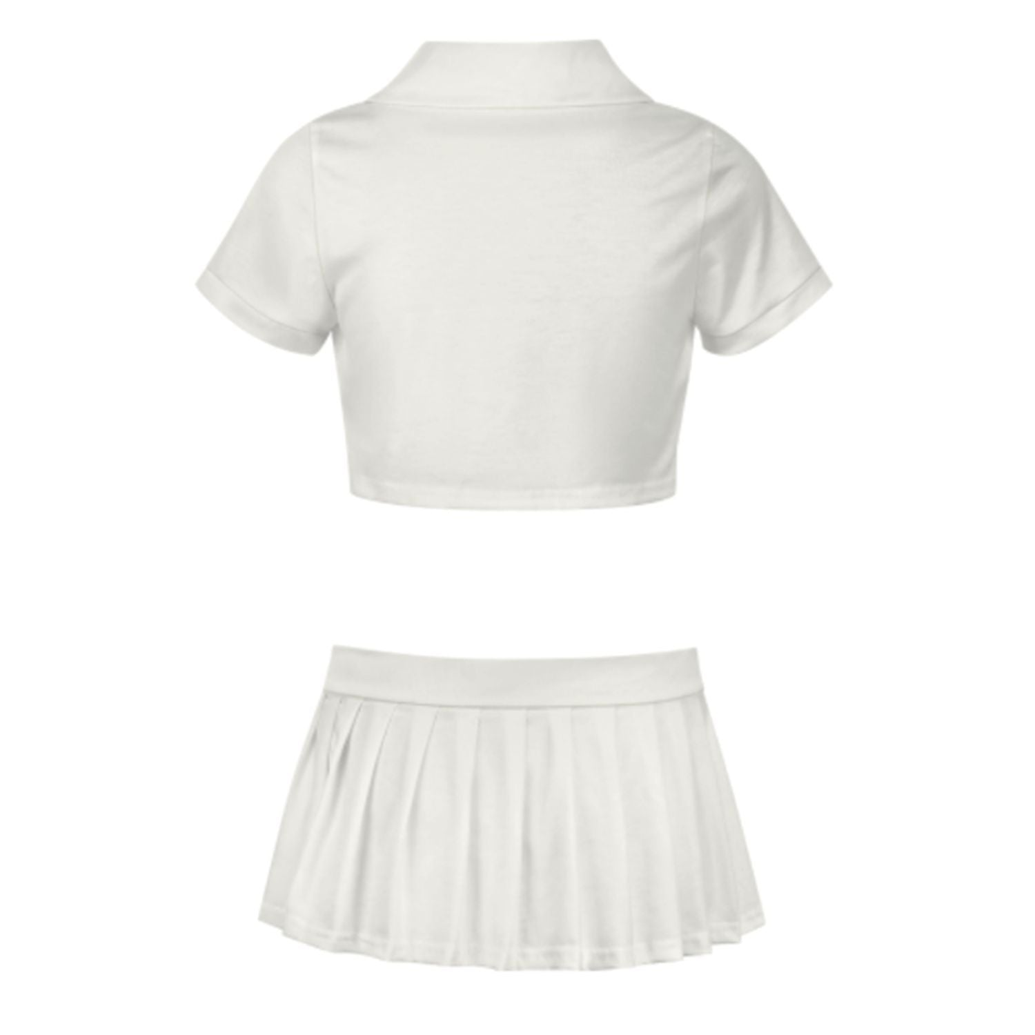 Sportliches und feminines Cheerleader Outfit Set aus atmungsaktivem Polyester mit figurbetontem Schnitt, ideal für Auftritte, Partys und Geschenke.