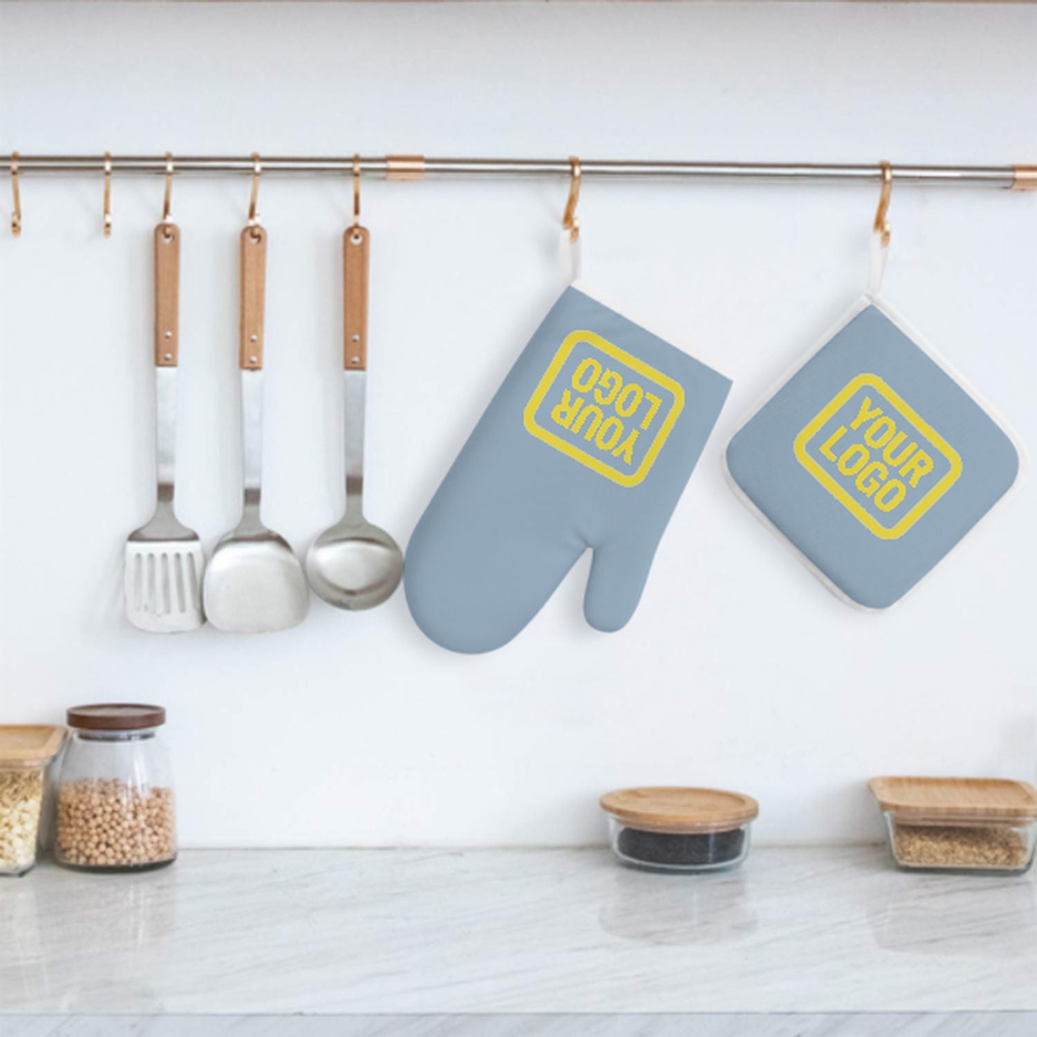 Ein stilvolles, hitzebeständiges 2-teiliges Topfhandschuh-Set aus robustem Polyestergewebe, ideal für Sicherheit und Komfort beim Kochen und Backen.