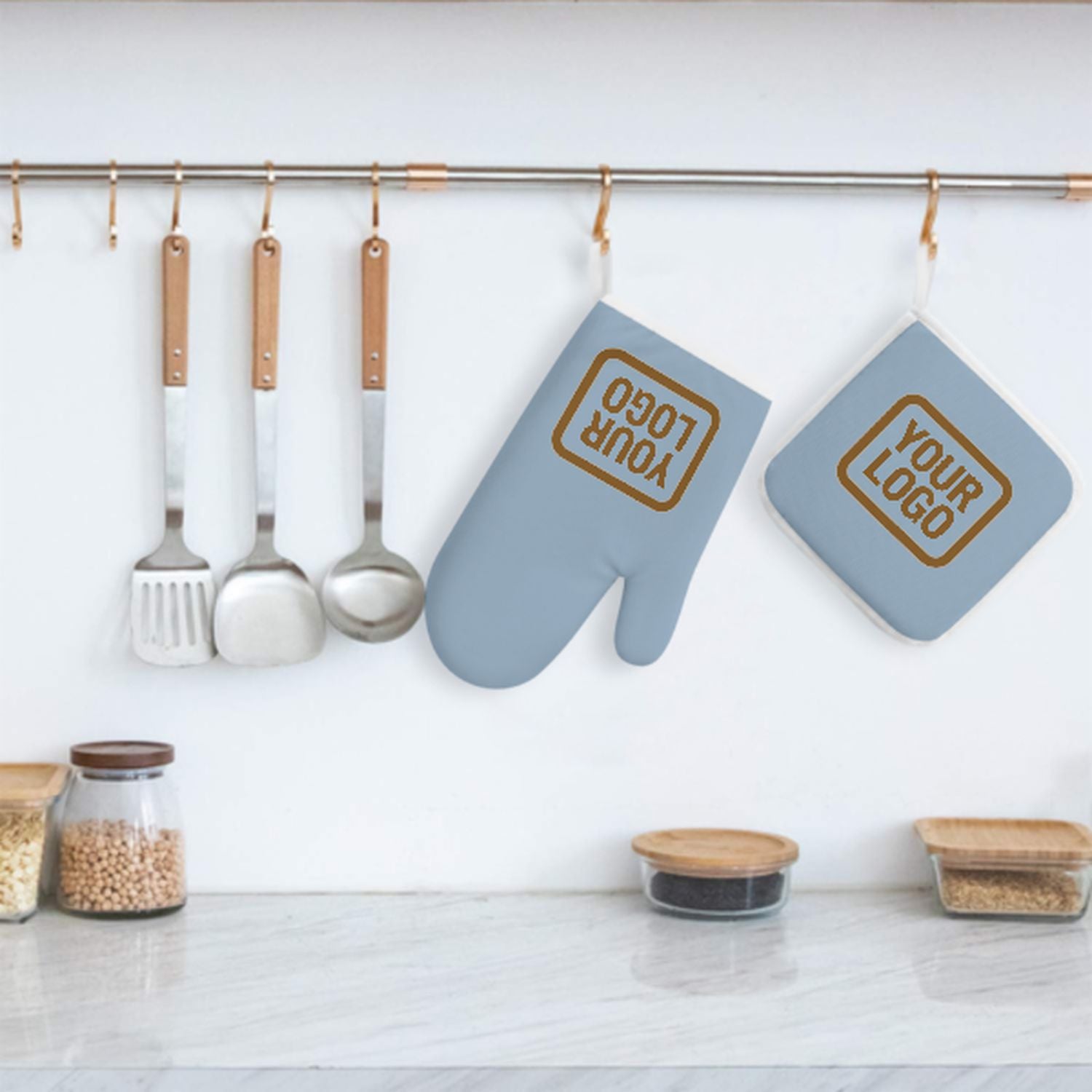 Maßgeschneidertes Hellblau Khaki Topfhandschuh Set – 2-teilig