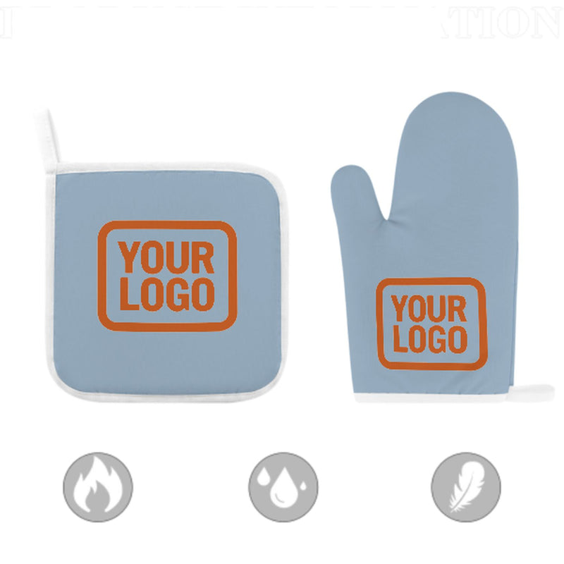 Maßgeschneidertes Hellblau Orange Topfhandschuh Set – 2-teilig