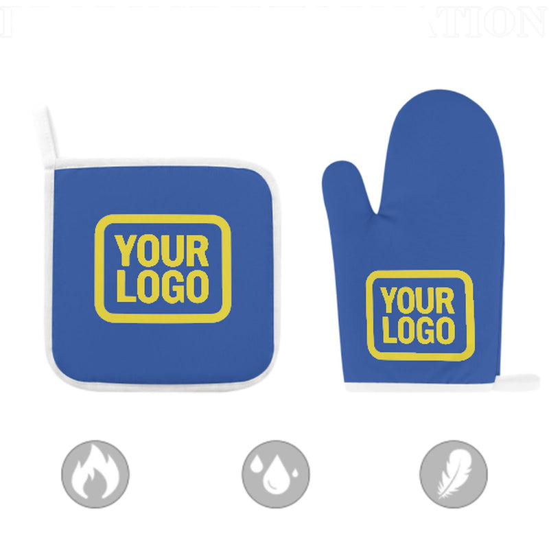 Ein stilvolles, hitzebeständiges 2-teiliges Topfhandschuh-Set aus robustem Polyestergewebe, ideal für Sicherheit und Komfort beim Kochen und Backen.