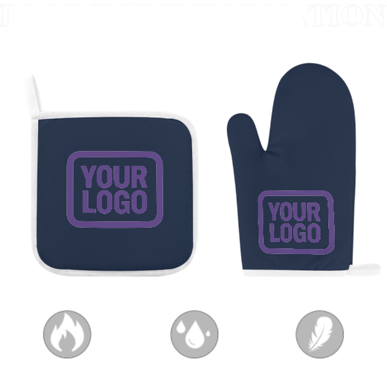 Ein stilvolles, hitzebeständiges 2-teiliges Topfhandschuh-Set aus robustem Polyestergewebe, ideal für Sicherheit und Komfort beim Kochen und Backen.