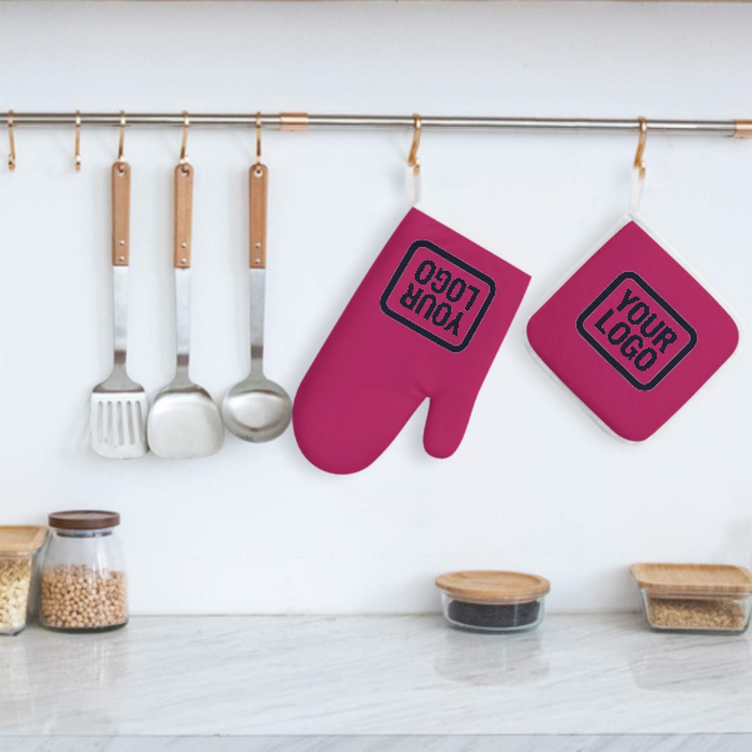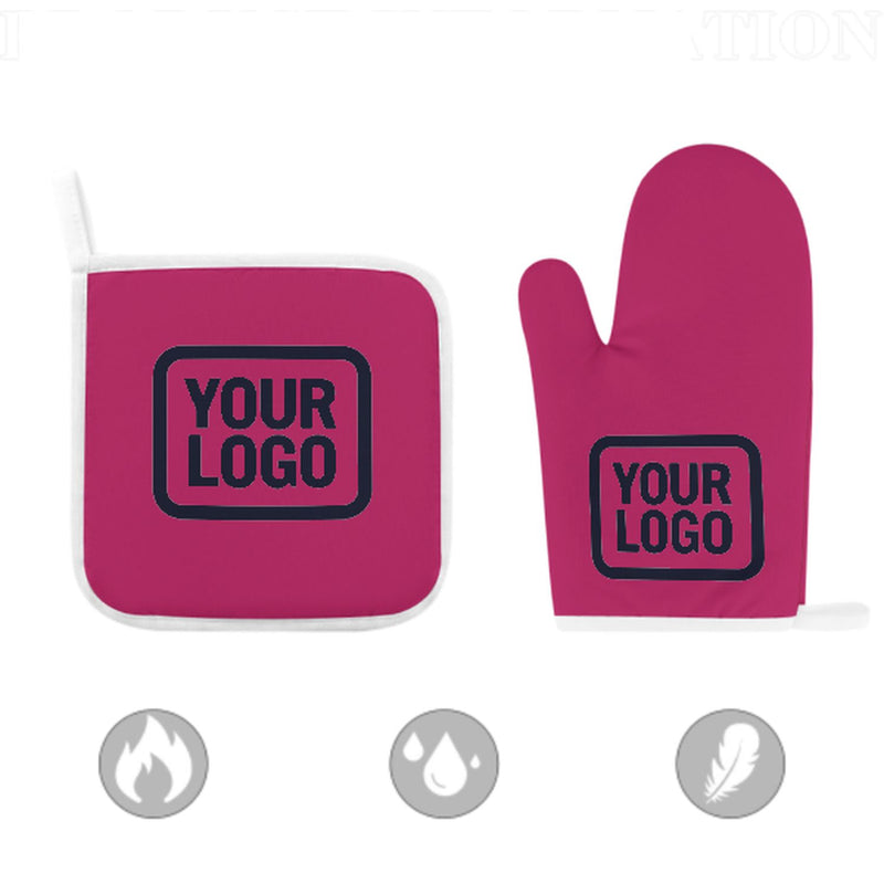 Maßgeschneidertes Rosarot Stahlblau Topfhandschuh Set – 2-teilig