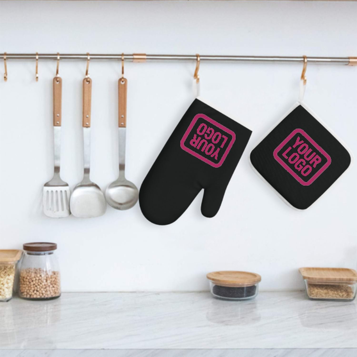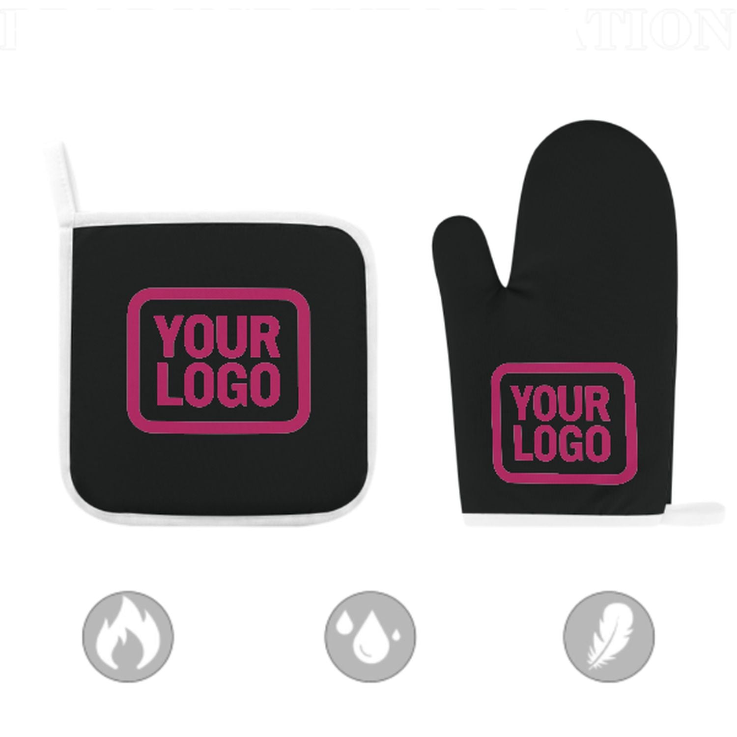 Maßgeschneidertes Schwarz Rosarot Topfhandschuh Set – 2-teilig
