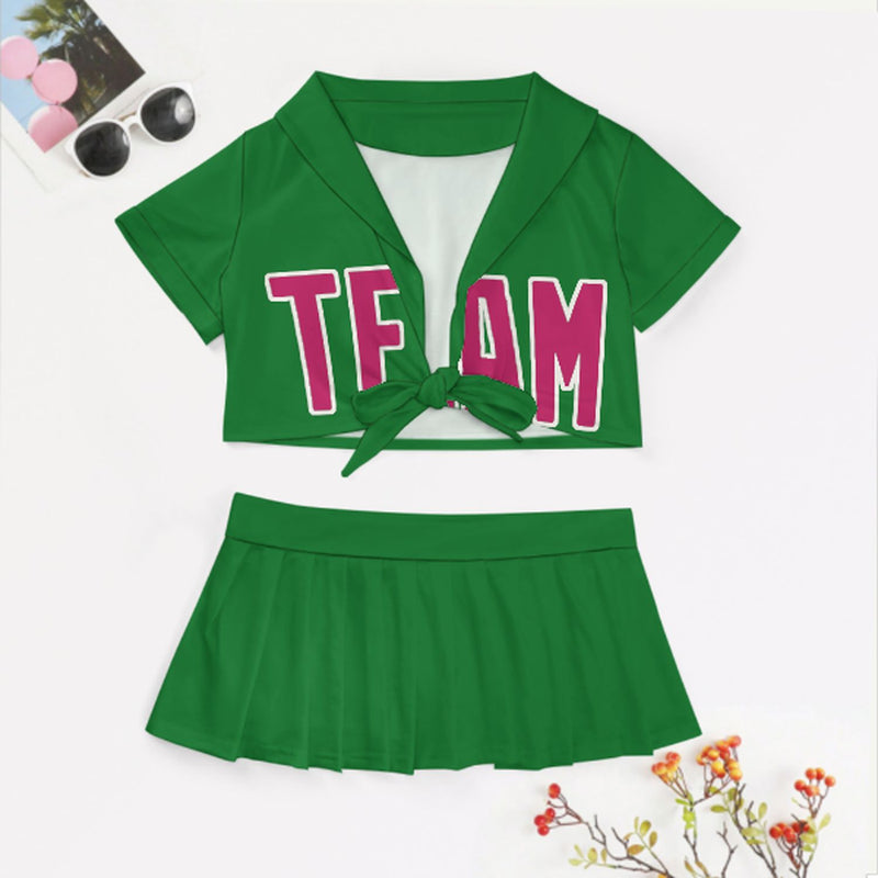 Maßgeschneidertes Smaragdgrün Rosarot Cheerleader Outfit Set