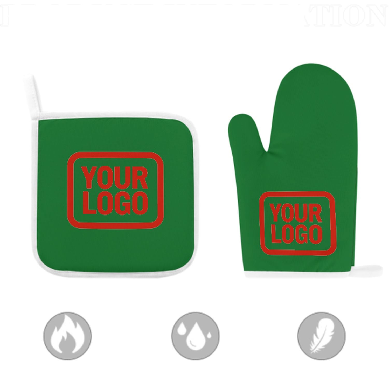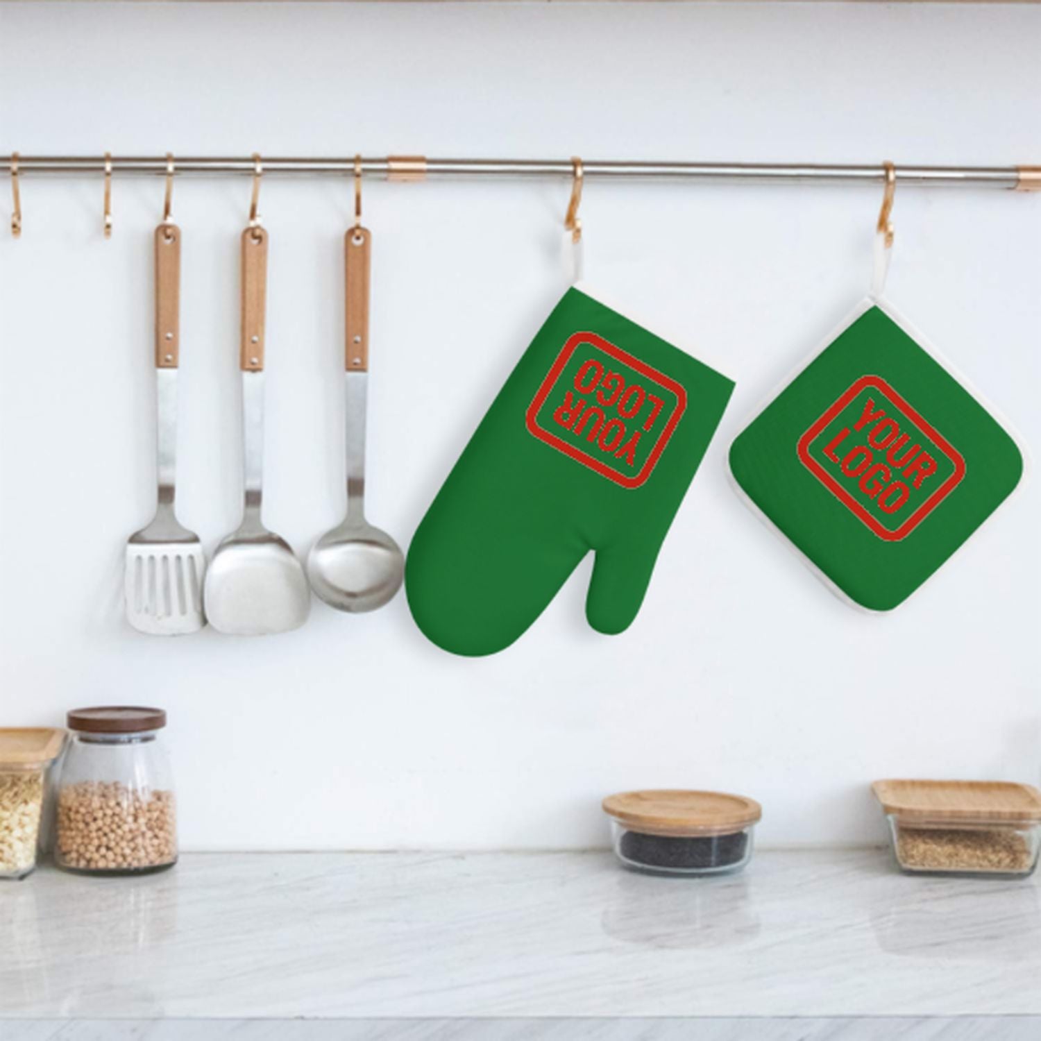 Ensemble de gants de cuisine sur mesure vert émeraude orange rouge – 2 pièces