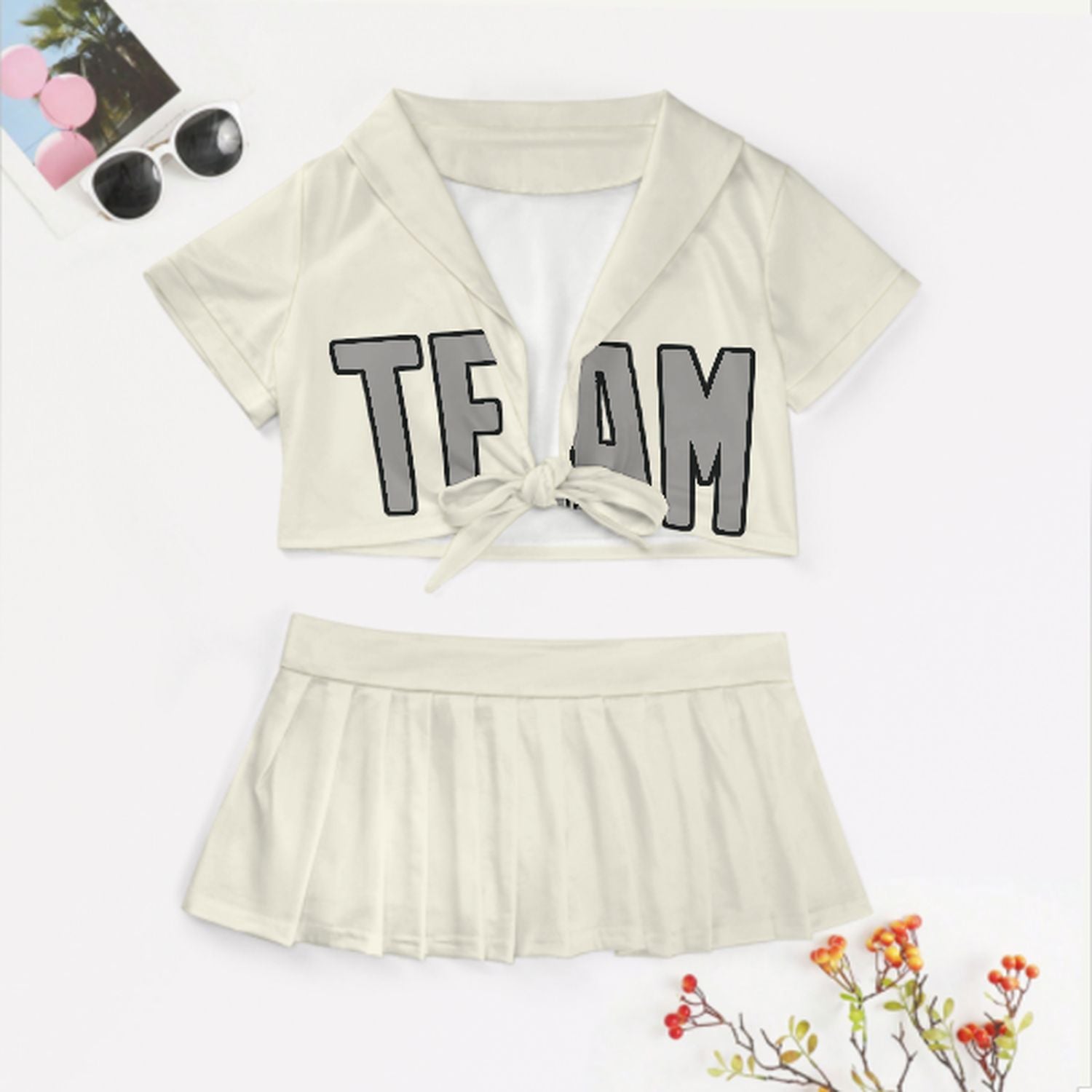 Maßgeschneidertes Beige Grau Cheerleader Outfit Set