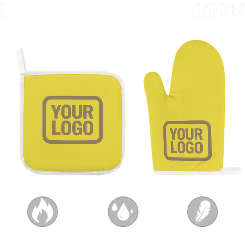 Ein stilvolles, hitzebeständiges 2-teiliges Topfhandschuh-Set aus robustem Polyestergewebe, ideal für Sicherheit und Komfort beim Kochen und Backen.