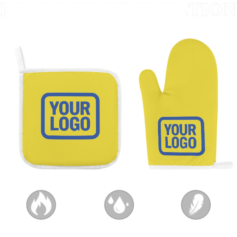 Ein stilvolles, hitzebeständiges 2-teiliges Topfhandschuh-Set aus robustem Polyestergewebe, ideal für Sicherheit und Komfort beim Kochen und Backen.