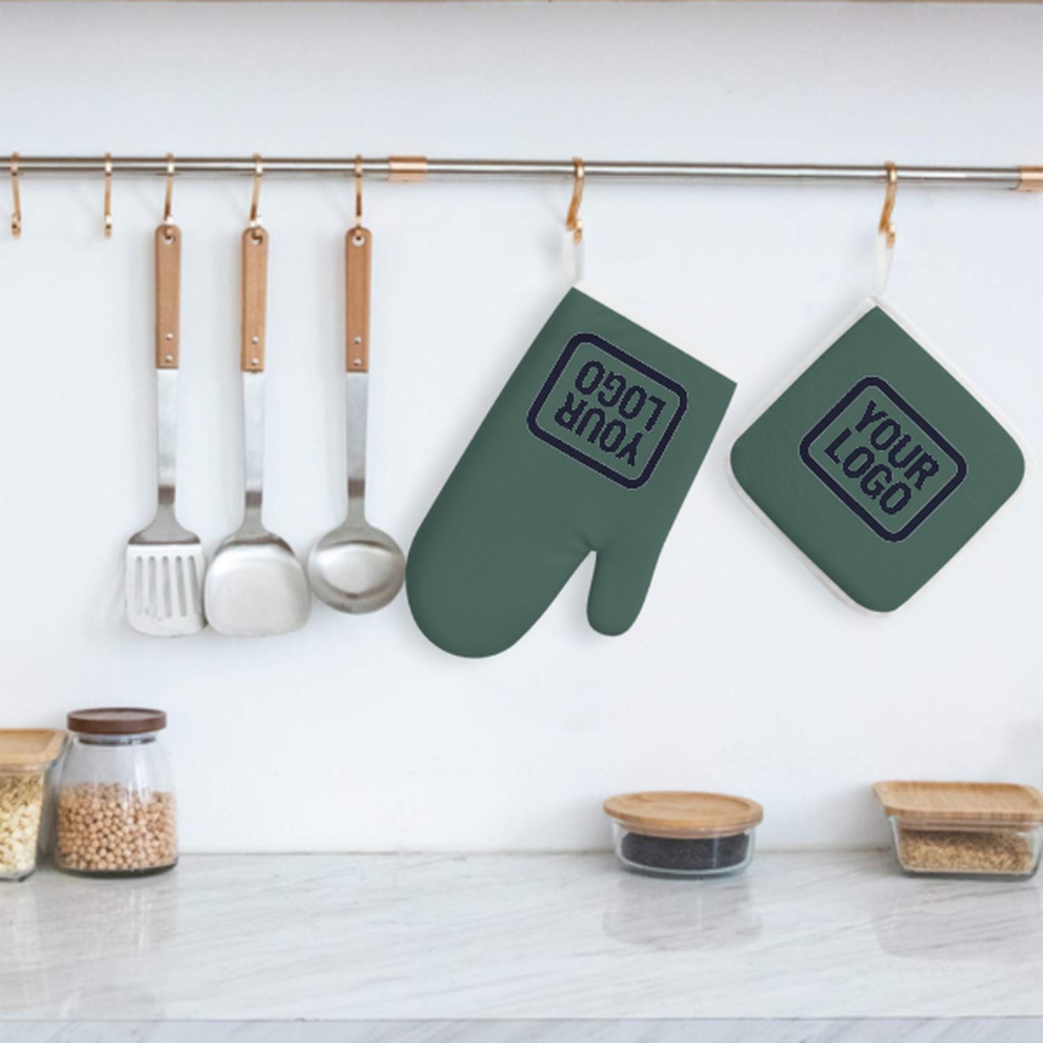 Maßgeschneidertes Blaugrün Stahlblau Topfhandschuh Set – 2-teilig