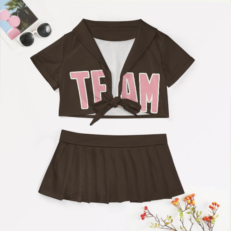 Maßgeschneidertes Braun Rosa Cheerleader Outfit Set