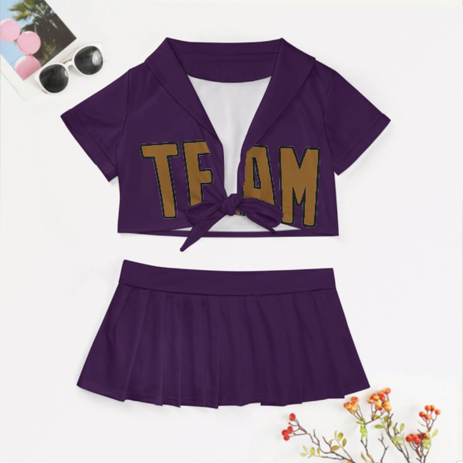 Maßgeschneidertes Lila Khaki Cheerleader Outfit Set