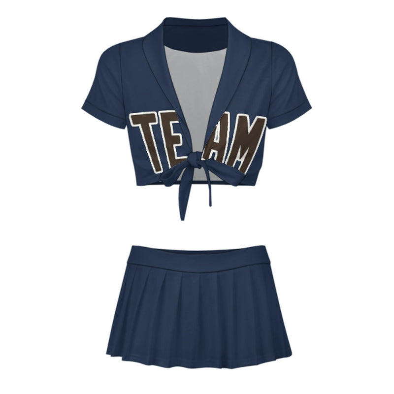 Maßgeschneidertes Marineblau Braun Cheerleader Outfit Set