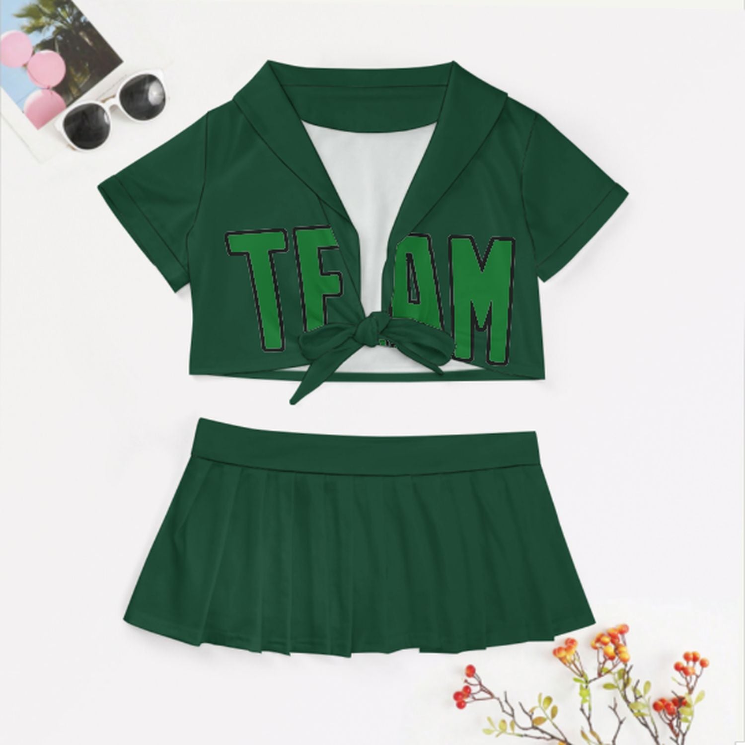Maßgeschneidertes Moosgrün Smaragdgrün Cheerleader Outfit Set