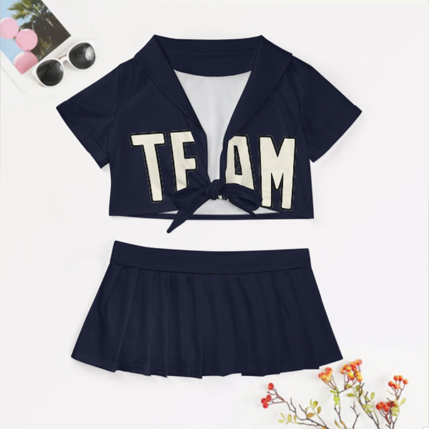 Maßgeschneidertes Stahlblau Beige Cheerleader Outfit Set