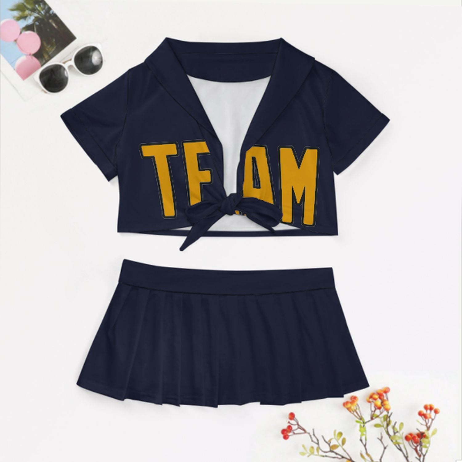 Maßgeschneidertes Stahlblau Gelb Cheerleader Outfit Set