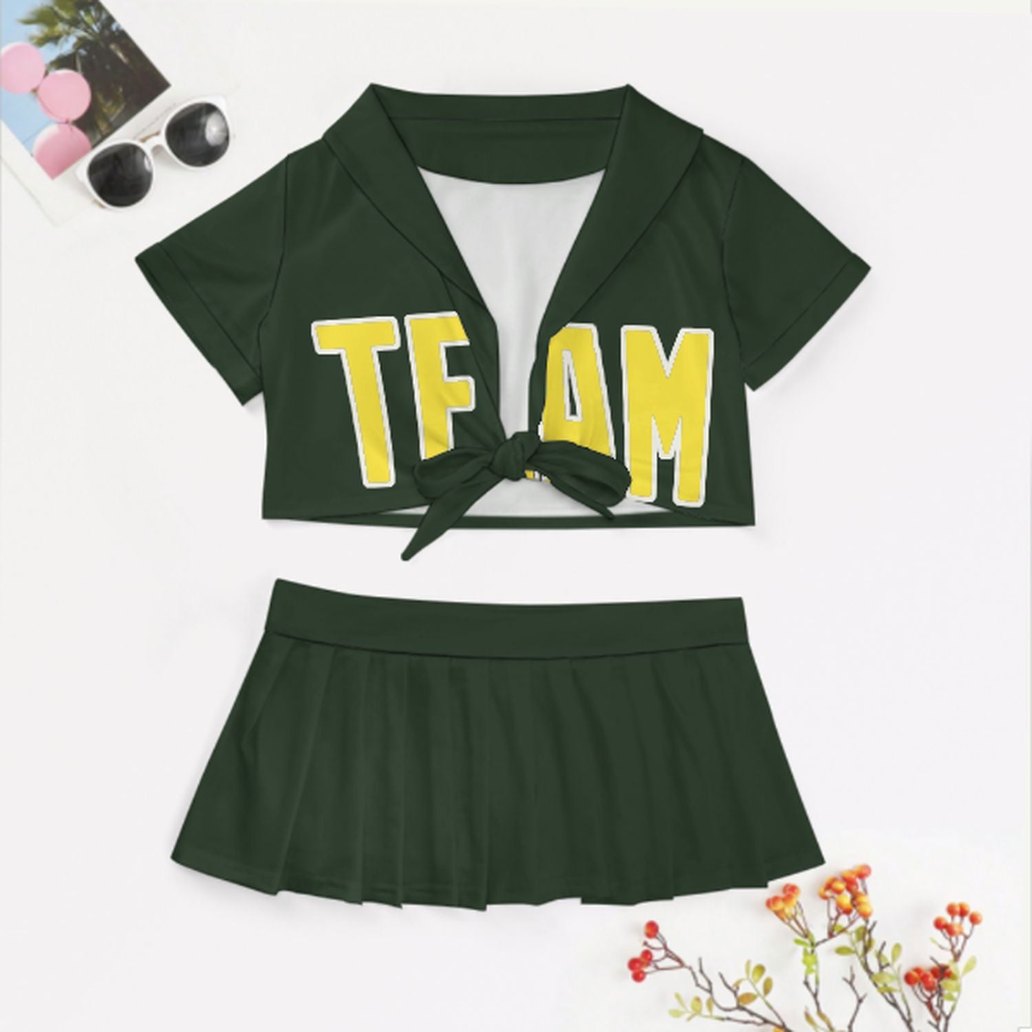 Maßgeschneidertes Tannengrün Blassgelb Cheerleader Outfit Set