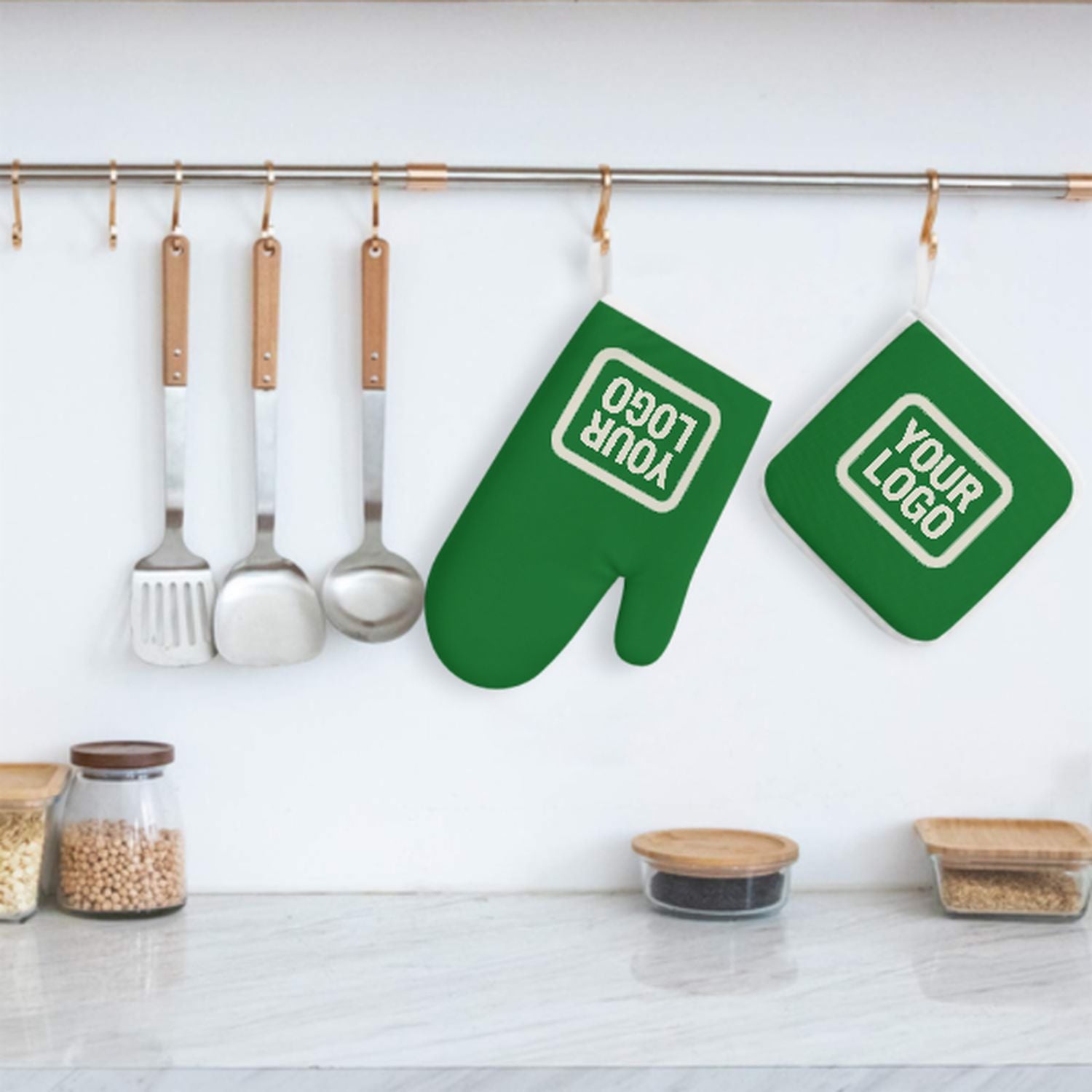 Prilagođeni smaragdno zeleni bež utikasti rukavica set-2-dijel