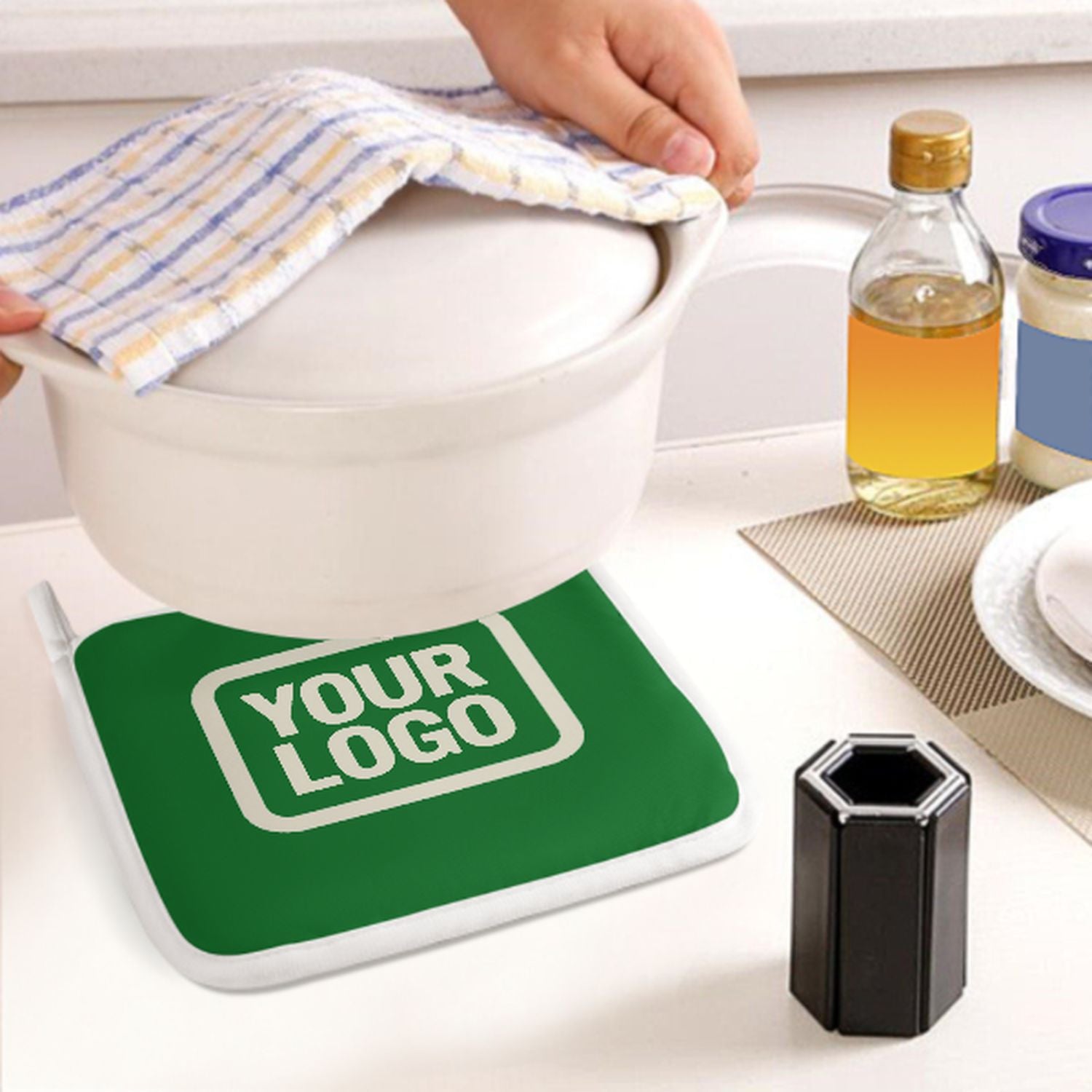 • Hitzeschutz: Verdickte Naturfaser-Isolierung schützt sicher vor heißen Töpfen und Backformen.