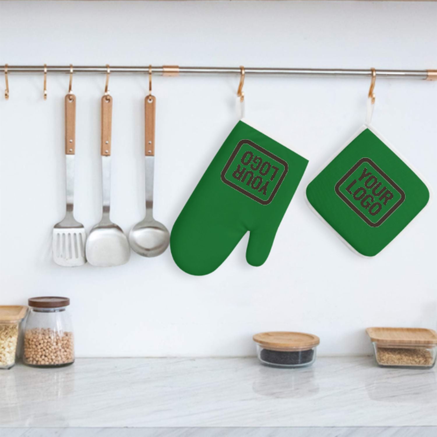 Prilagođeni smaragdno zeleno smeđa lončana rukavica set-2-dijel