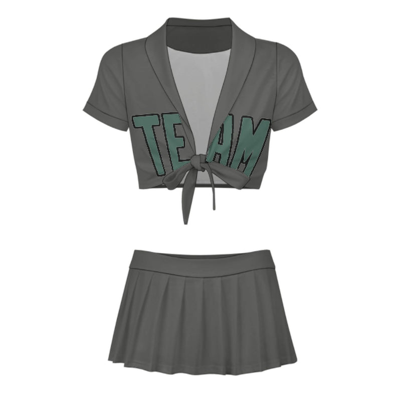 Maßgeschneidertes Dunkelgrau Blaugrün Cheerleader Outfit Set