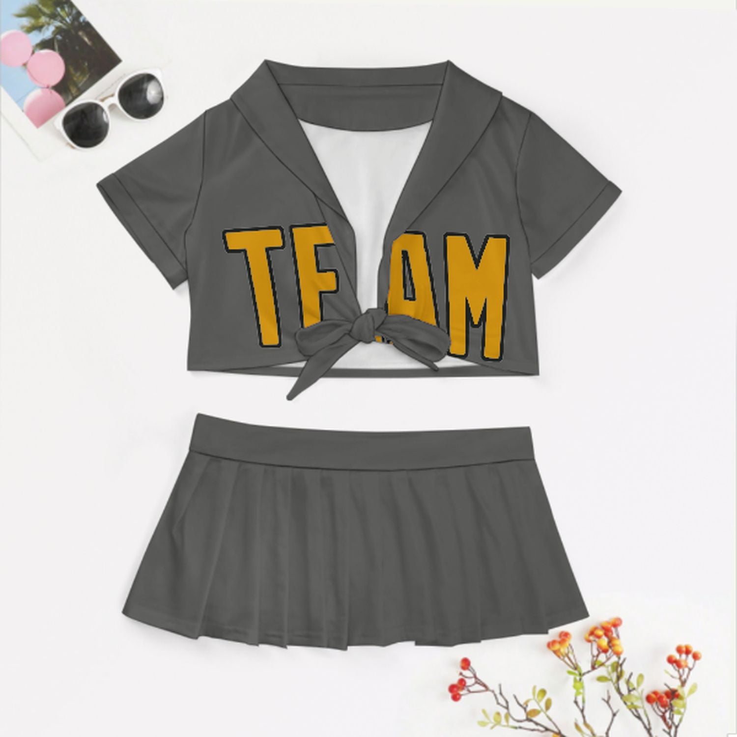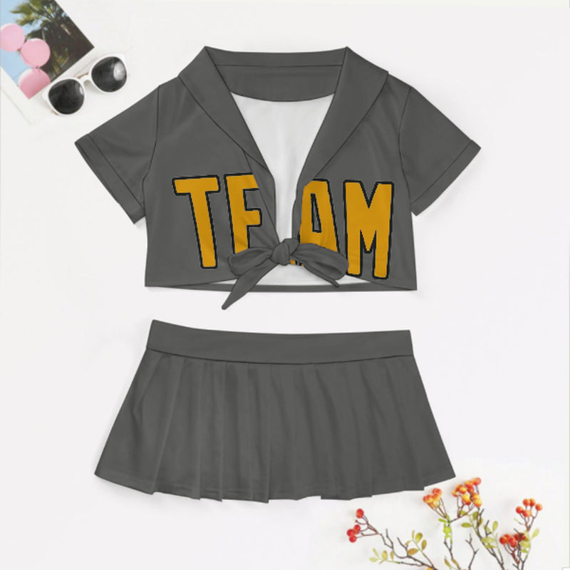 Maßgeschneidertes Dunkelgrau Gelb Cheerleader Outfit Set