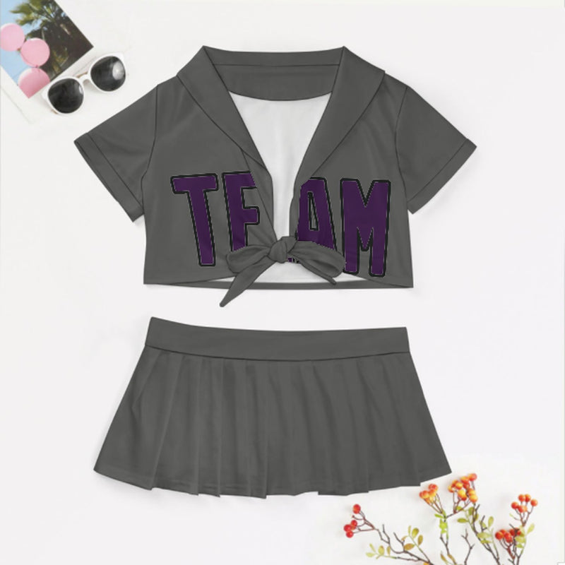 Maßgeschneidertes Dunkelgrau Lila Cheerleader Outfit Set