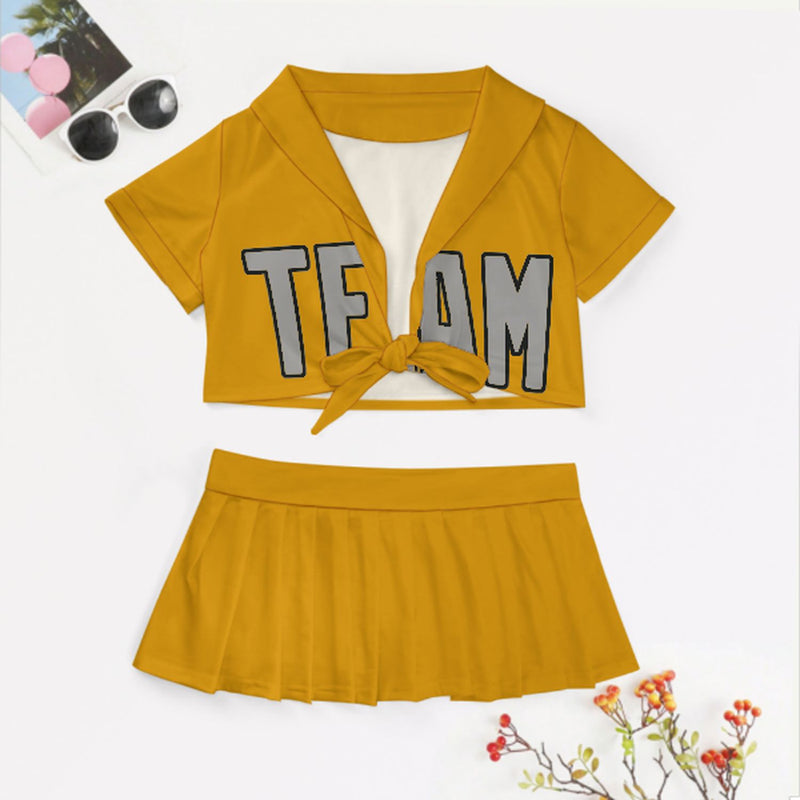 Maßgeschneidertes Gelb Grau Cheerleader Outfit Set
