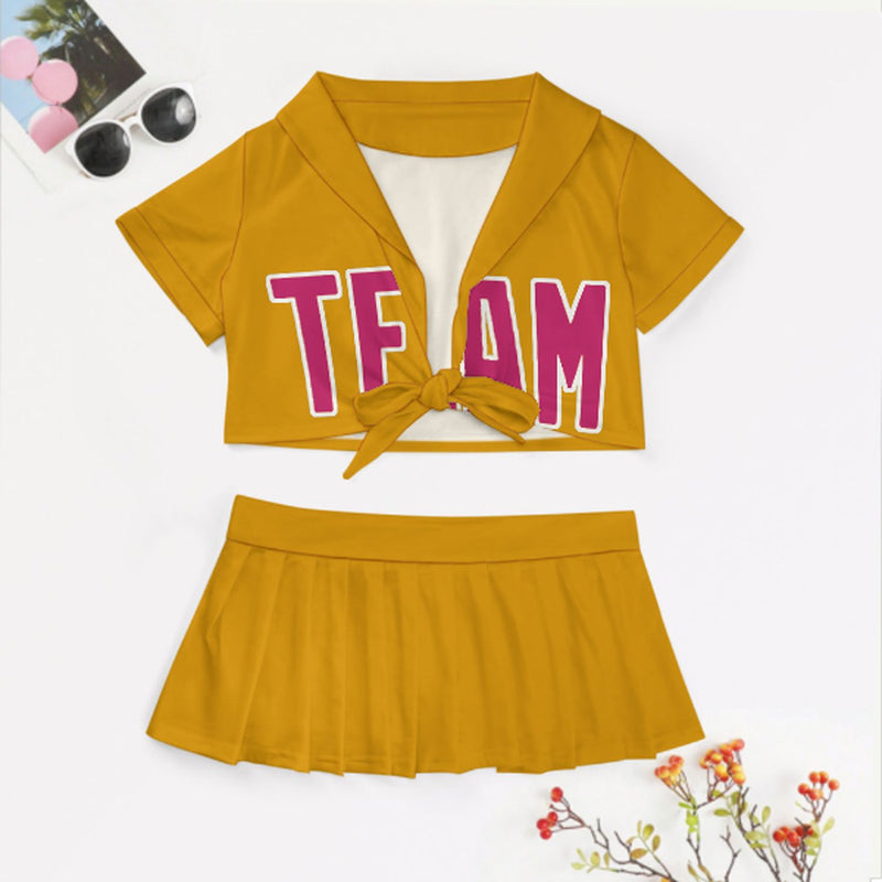 Maßgeschneidertes Gelb Rosarot Cheerleader Outfit Set