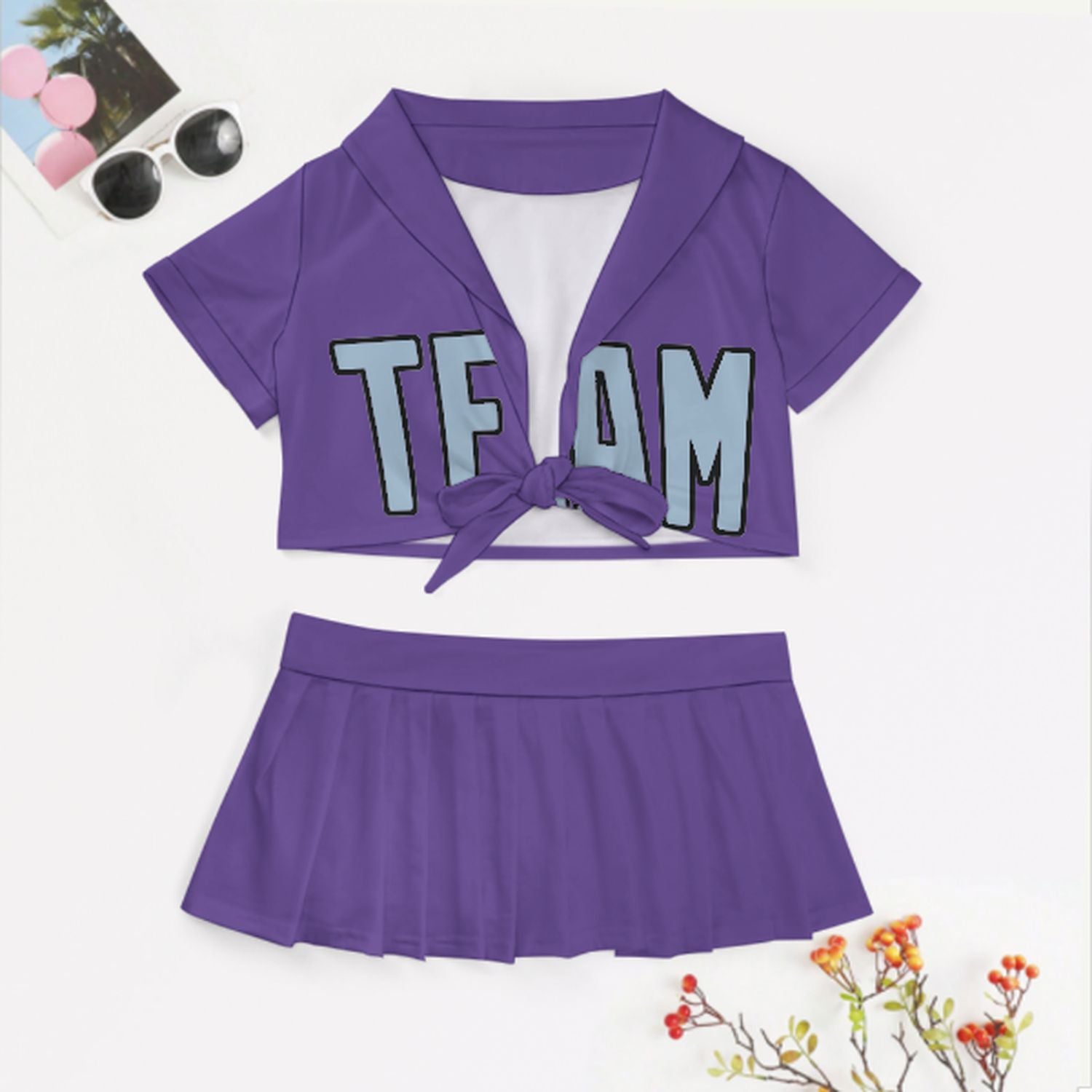 Maßgeschneidertes Lavendel Hellblau Cheerleader Outfit Set
