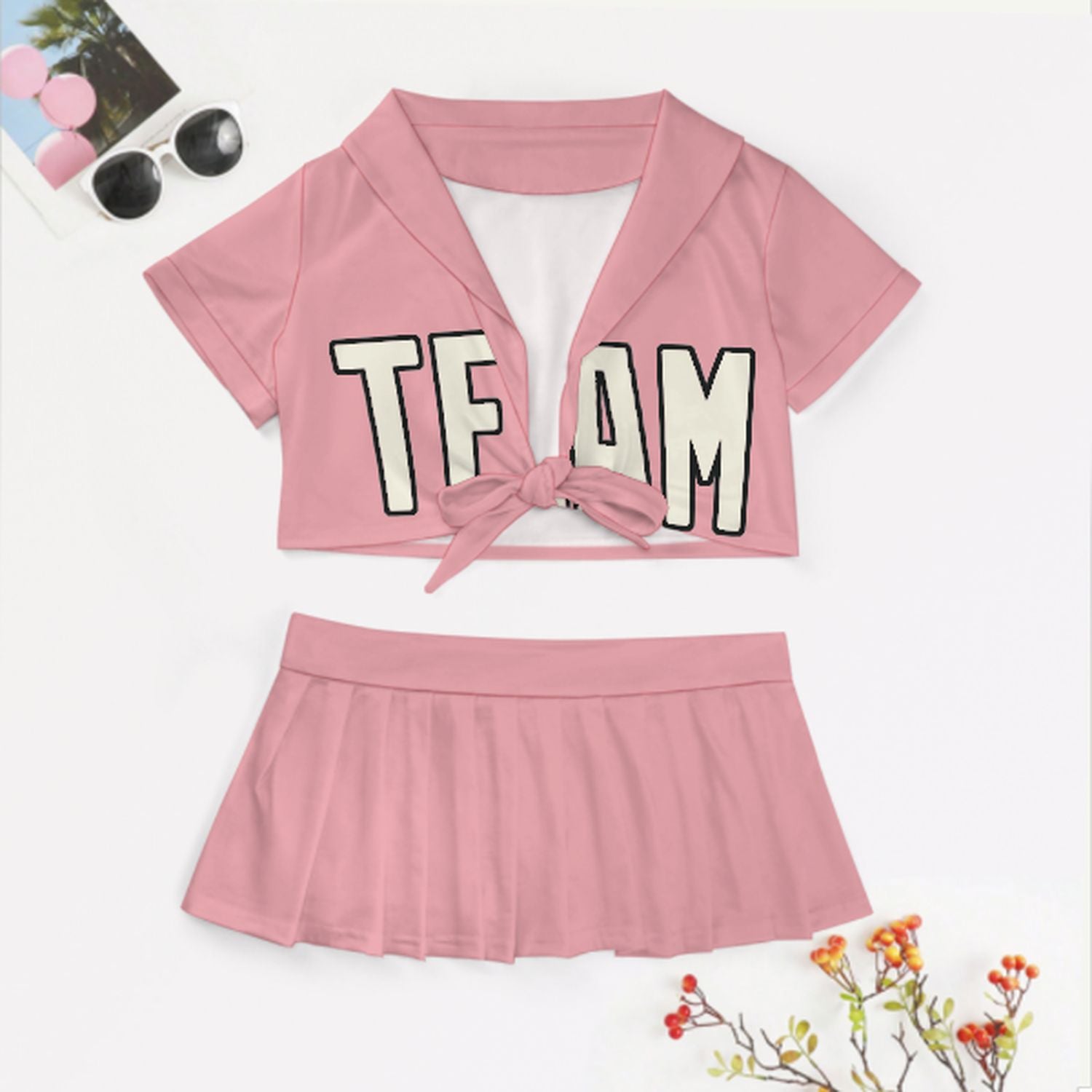 Maßgeschneidertes Rosa Beige Cheerleader Outfit Set
