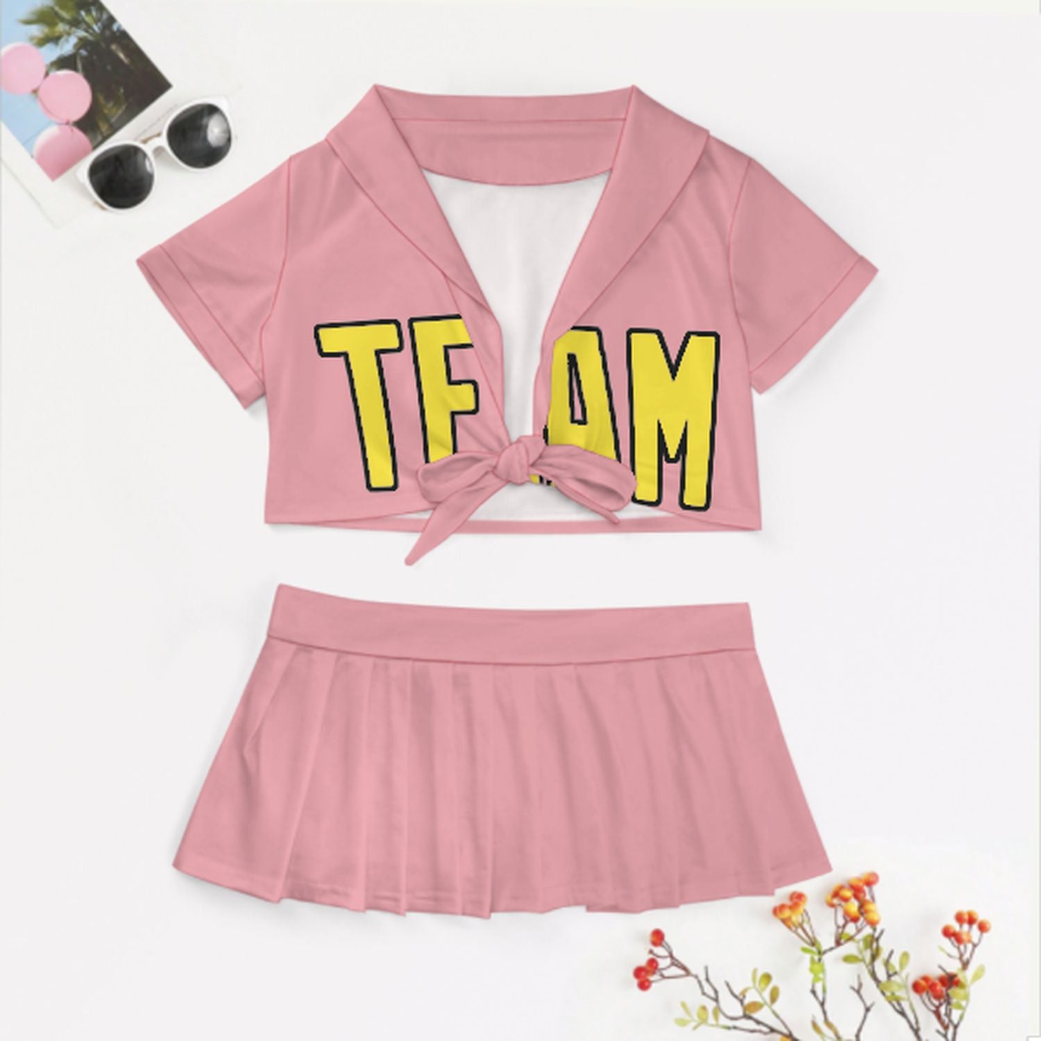 Maßgeschneidertes Rosa Blassgelb Cheerleader Outfit Set