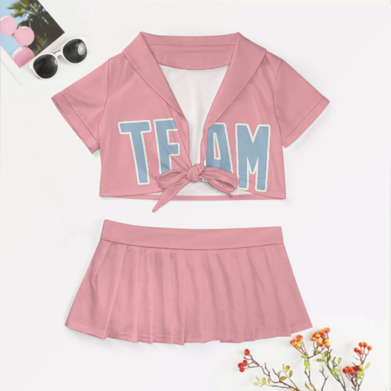 Maßgeschneidertes Rosa Hellblau Cheerleader Outfit Set