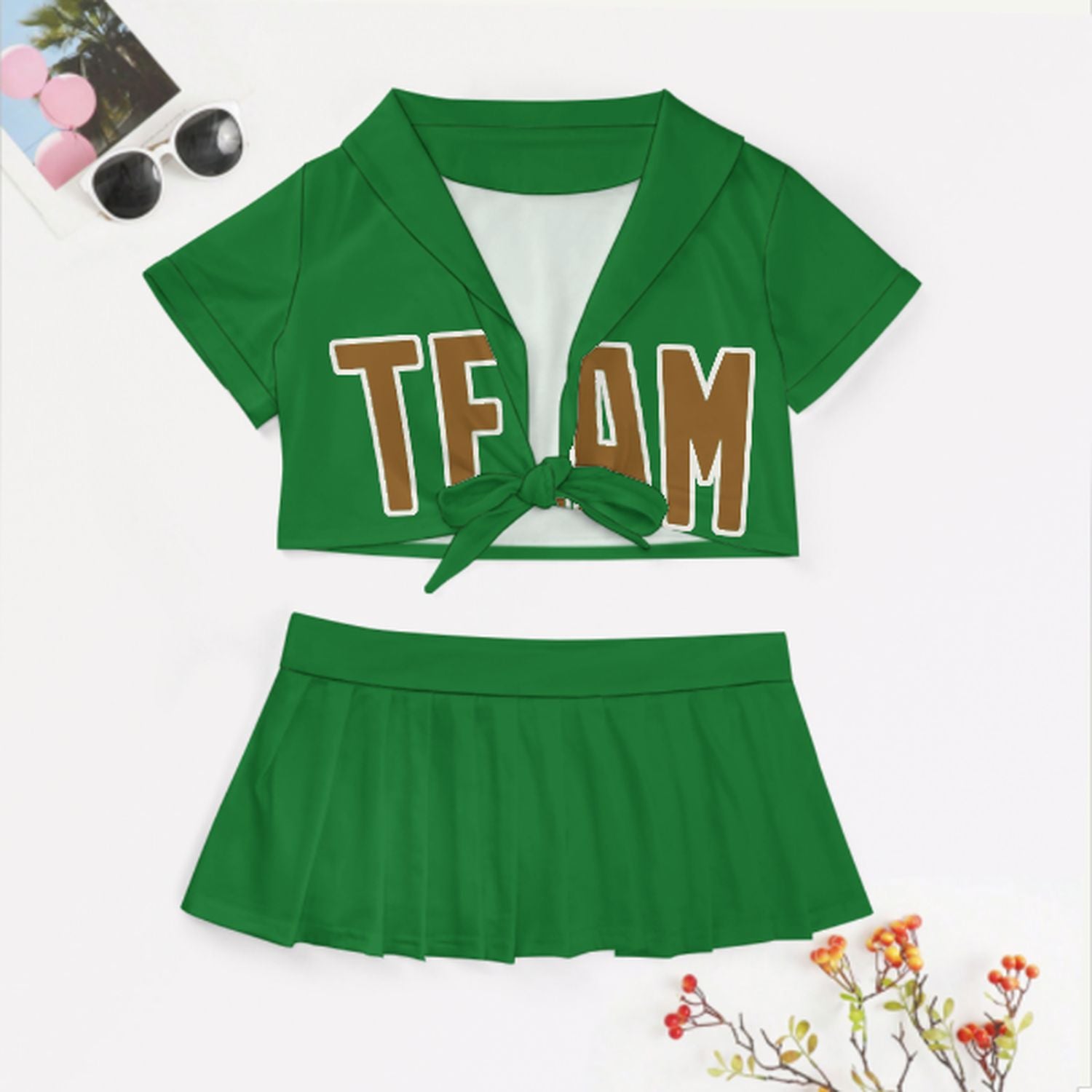 Maßgeschneidertes Smaragdgrün Khaki Cheerleader Outfit Set