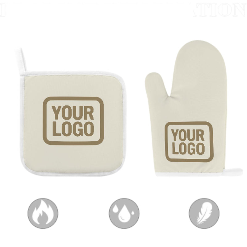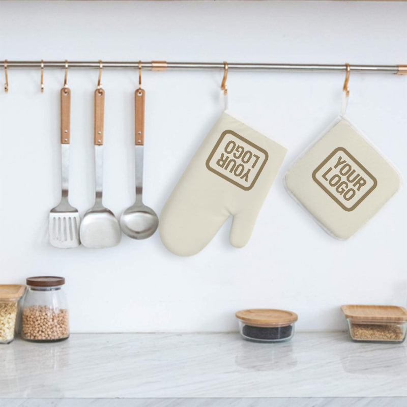 Set di guanti da forno beige chiaro kaki su misura – 2 pezzi