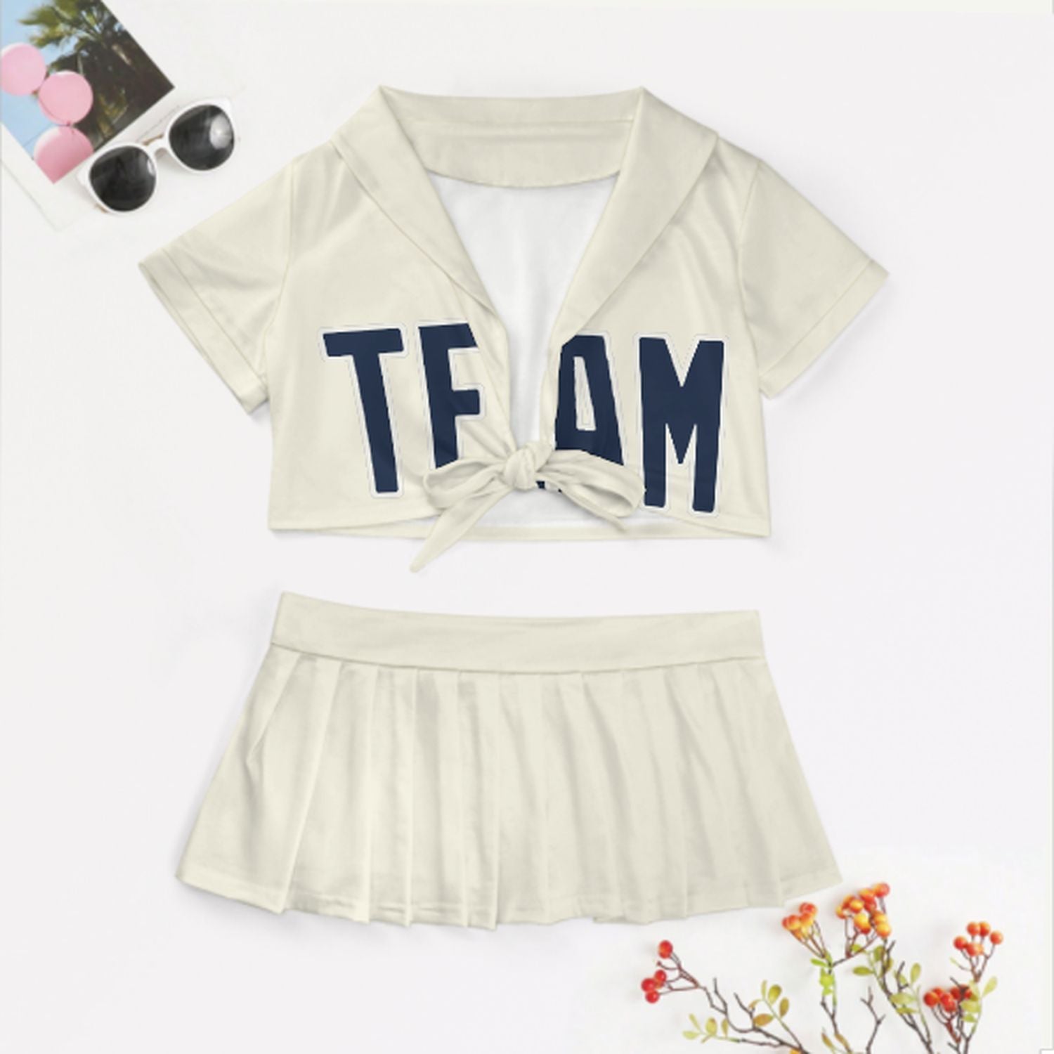 Completo da cheerleader personalizzato beige blu navy